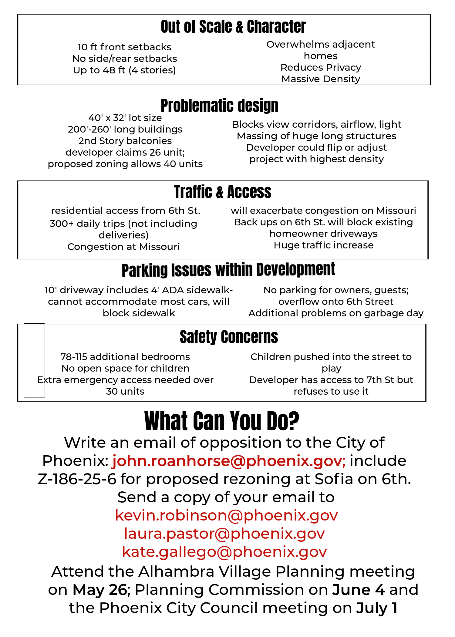 1. Send an email of opposition. Share your concerns in your own words (this carries more weight than a form letter.) Please include the Z-186-25-6 for proposed rezoning project Sofia on 6th to: